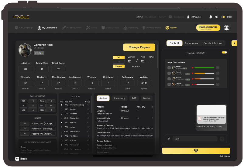 Valere built an AI-powered platform that automates encounter generation, NPC creation, monster control, world‑building, character tracking, and timeline management to reduce the DM’s workload and speed in‑game decisions. A foundational release focuses on character sheet management, inventory tracking, collaborative forums, and a one‑shot tutorial for onboarding. The roadmap includes more sophisticated NPC behavior, real‑time schedule tracking, subscription‑based AI DM functionality, and AI video‑driven interactions; the interface emphasizes dark mode, side panels, and bottom navigation for seamless play online or offline.