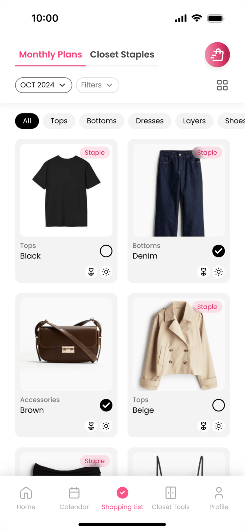 The shopping experience feels like a natural extension of the wardrobe planning process rather than advertising. The marketplace allows users to browse partner stores within the app, click through to external stores via referral links (no in-app purchases), and shop only when it genuinely makes sense for them. This feature creates a significant revenue stream through affiliate commissions on referred purchases.