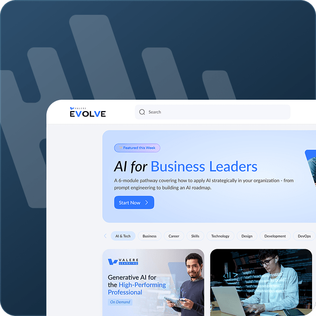 Valere Evolve is an AI maturity platform that audits your unique workflows and unifies workforce education, custom development, knowledge capture, and autonomous execution into one connected system. Built for organizations and professionals ready to make AI a genuine competitive advantage.