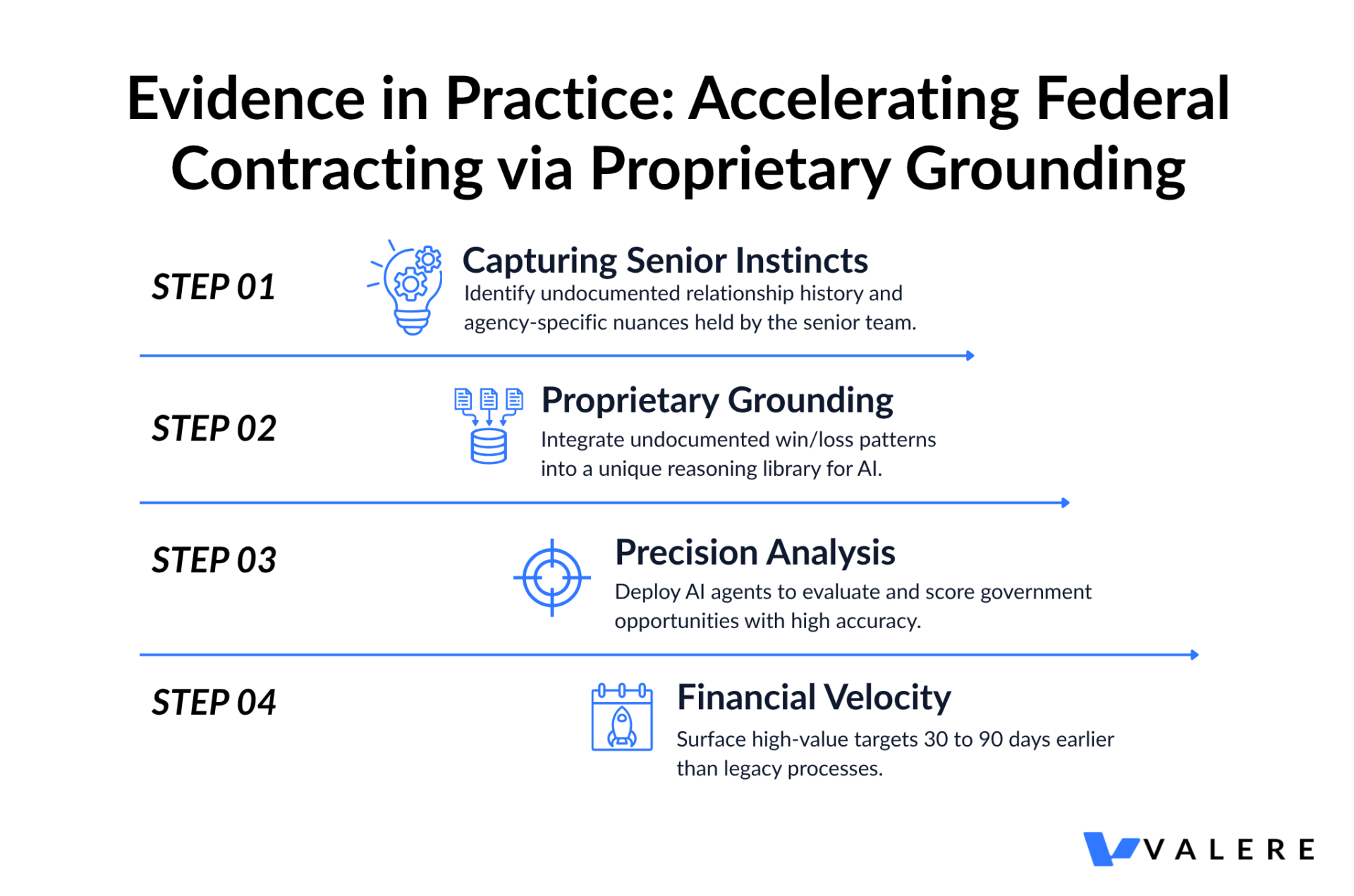 A federal contracting firm we worked with used this approach to score government contracting opportunities with substantially more precision than their previous process allowed. Standard models carry no knowledge of agency-specific relationship history, Navy contracting nuances, or the undocumented win and loss patterns that determine which opportunities are worth pursuing. We captured institutional intelligence from sales executives, engineers, and operations teams. The resulting system surfaced high-value targets 30 to 90 days earlier than their prior process. The advantage came entirely from the data layer, and data advantages don’t evaporate when a new model version ships.